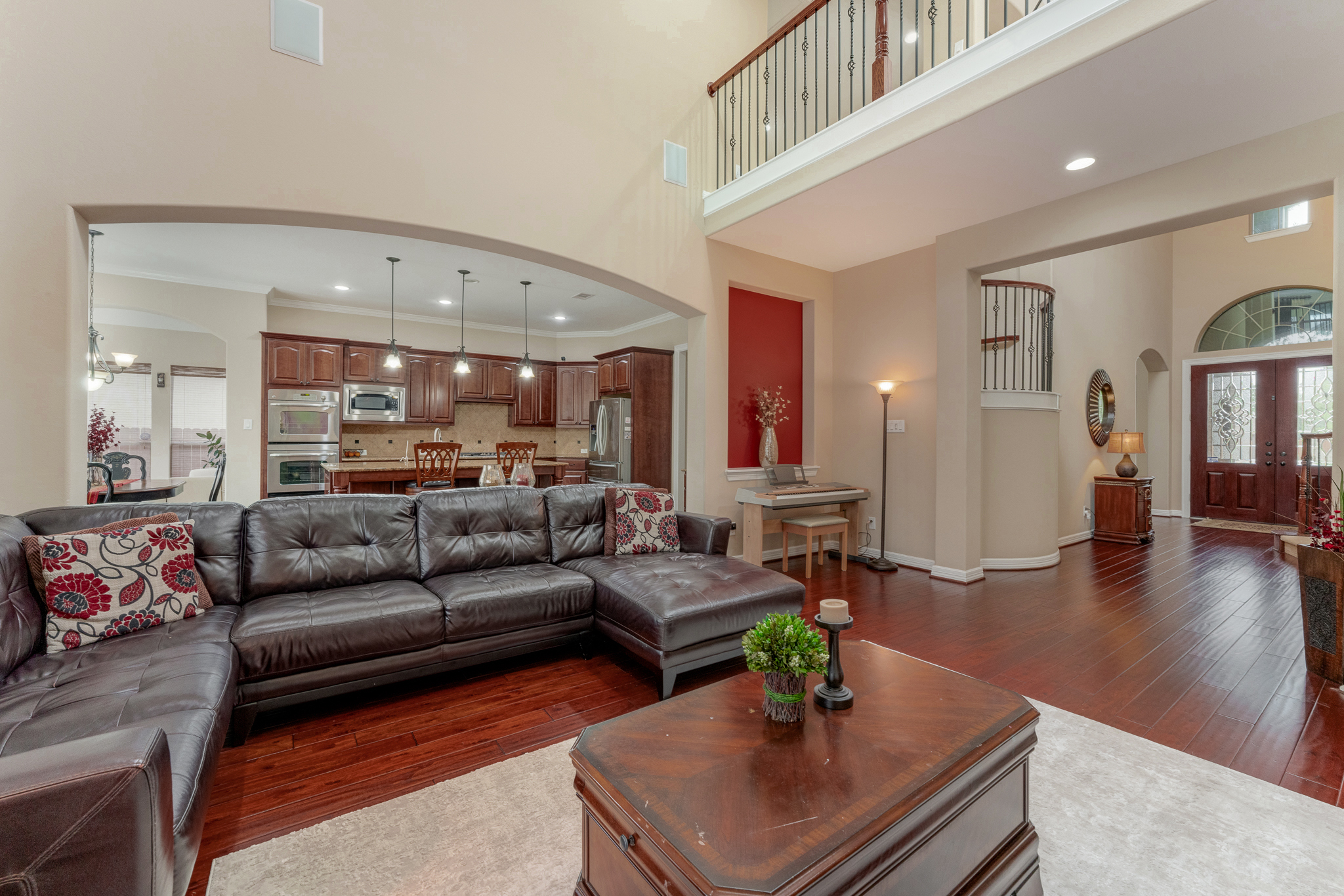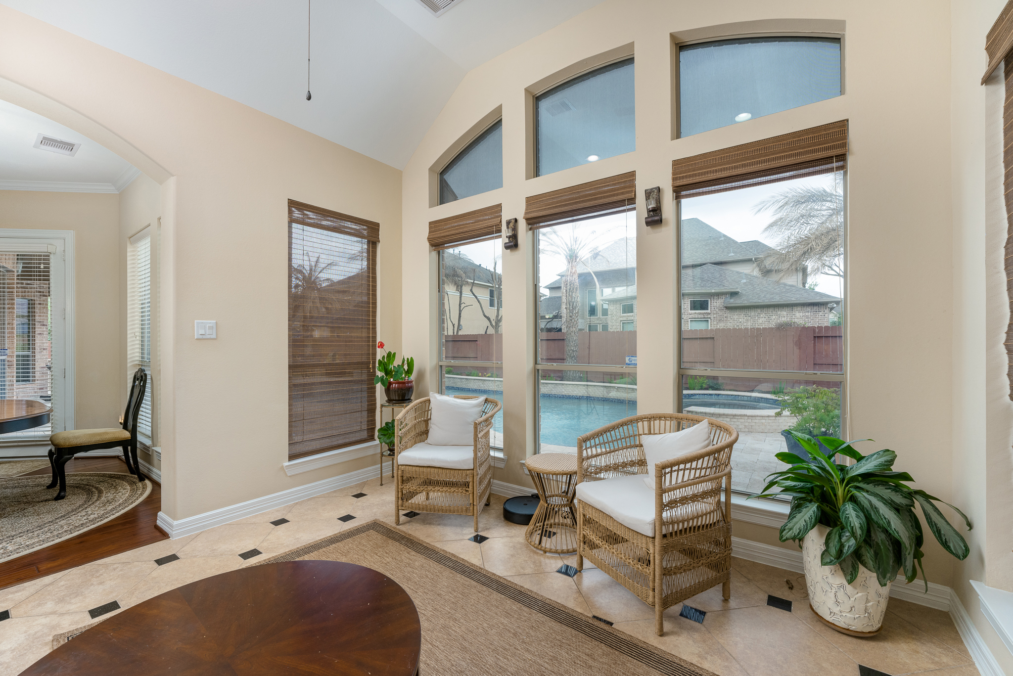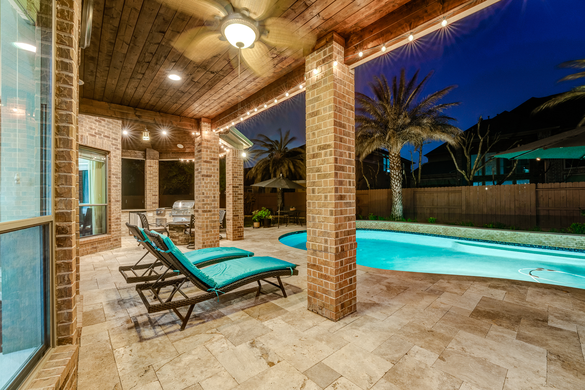 Beautiful Taylor Morrison home on an oversized cul-de-sac lot offers a stunning outdoor oasis as well as an impressive design in the popular Milano floorplan. Features include wrought iron double front door entry, stylish foyer, wood flooring, high ceilings, study with closet, and dining room with bay windows. The gourmet island kitchen boasts stainless steel appliances, solid wood cabinetry, and double oven. The open living room with soaring ceilings, along with a spacious sunroom, both overlook the scenic outdoor oasis. The primary suite offers a restful retreat with spacious bathroom, walk-in shower, spa tub, double vanity, and walk-in closets. Upstairs you’ll find 3 bedrooms, spacious game room with covered balcony, media room that could be used as additional bedroom, and plenty of storage. Your outdoor paradise includes a pool, spa, pine plank ceiling on a covered patio, and gorgeous travertine stone – ideal for entertaining friends and family. Zoned to renowned Katy ISD schools.