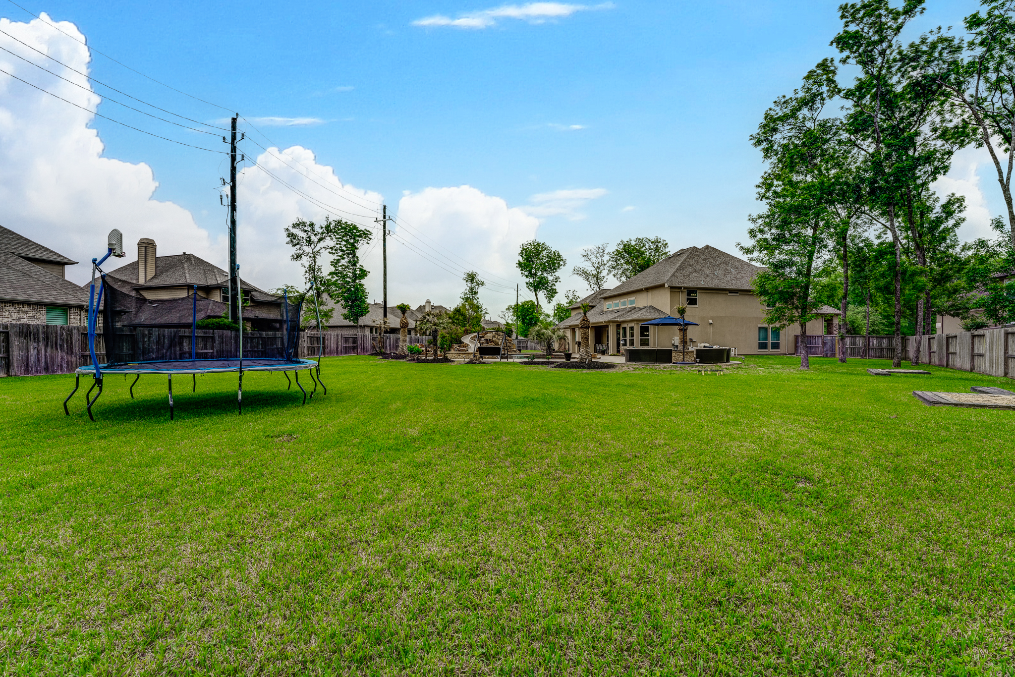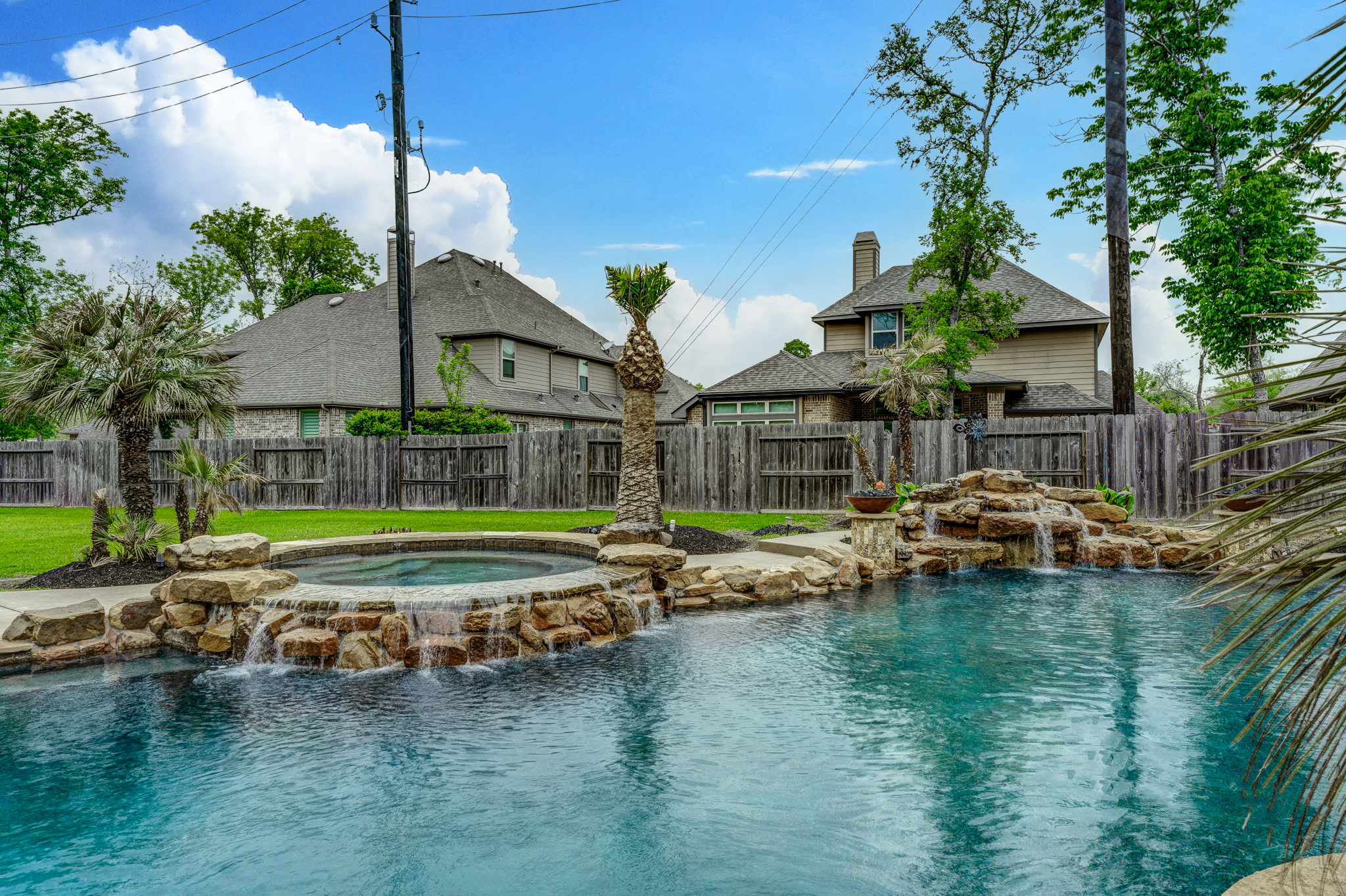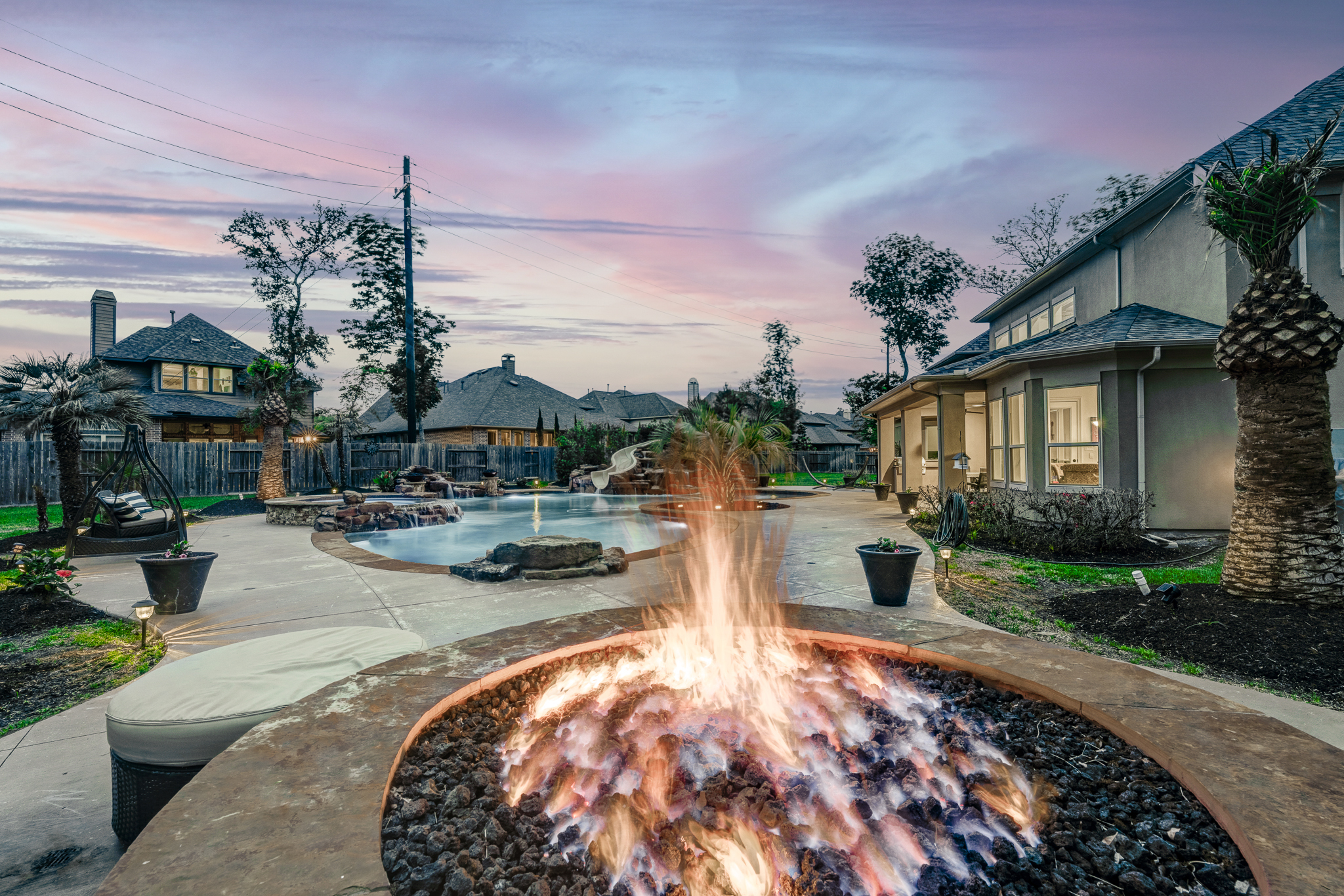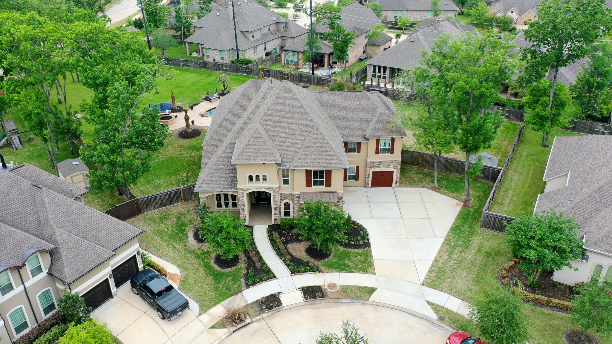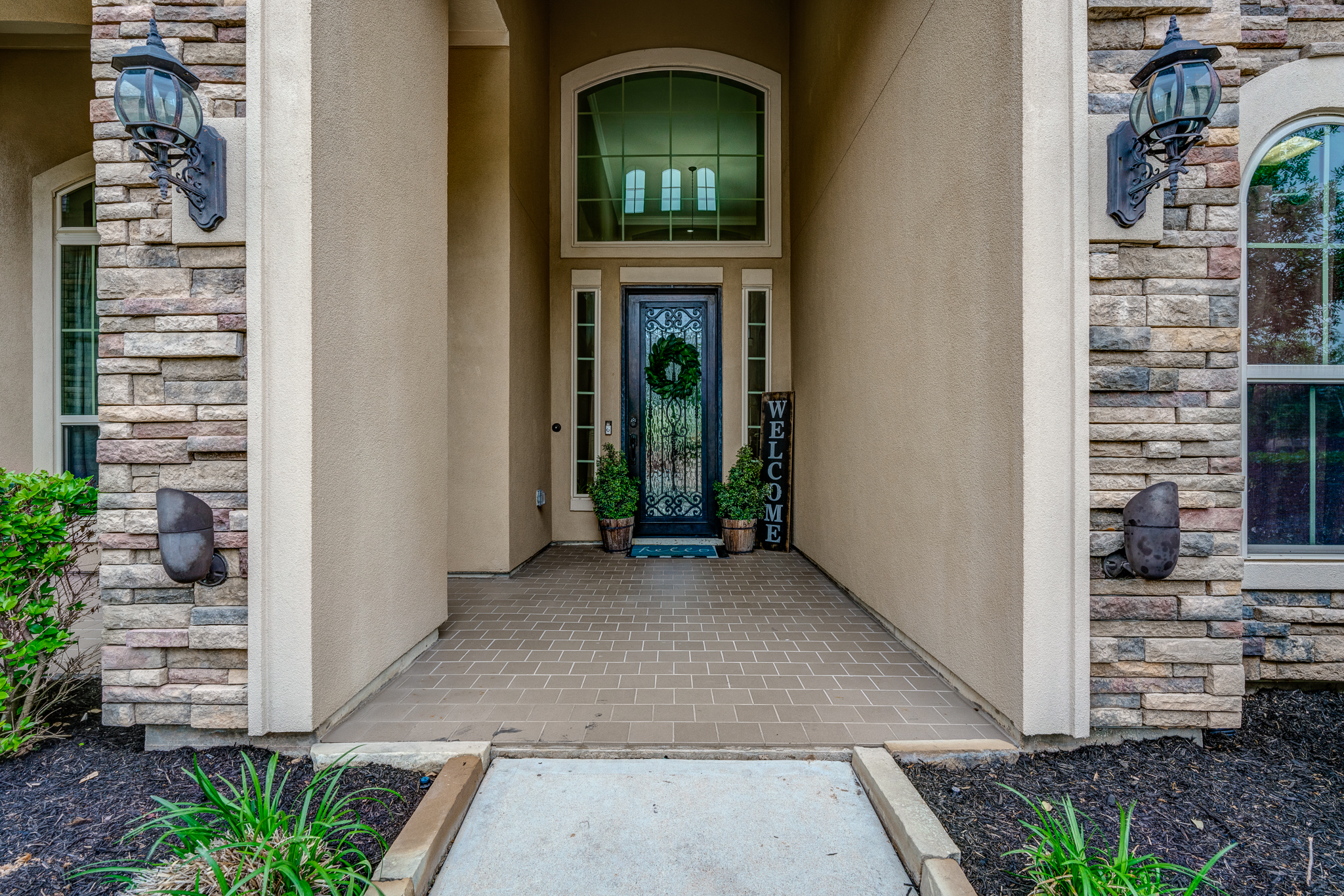 Breathtaking 6-bed, 4.5-bath property by J. Patrick Homes on graciously proportioned cul-de-sac lot across from nature area in Sienna Plantation. 107-yd wide backyard tropical retreat featuring a covered patio, outdoor kitchen, pool with rock waterfall and slide, spa, firepit, and ample green space. Other features include grand 2-story foyer, wrought iron spindles, built-ins and granite countertops throughout, study with French doors and coffered ceiling, formal dining room, spacious living area with wood beam ceiling, floor-to-ceiling stone fireplace, and large glass doors leading out to the backyard, game room, media room, and 2-car side swing-in garage plus a 1-car garage. The gourmet kitchen boasts a stainless steel farmhouse sink, walk-in pantry, butler’s pantry with wine fridge, and top-of-the-line appliances, including Thermador 6-burner gas cooktop with griddle and a double oven. The primary suite boasts a walk-in closet, separate vanities, jetted tub, and frameless shower.